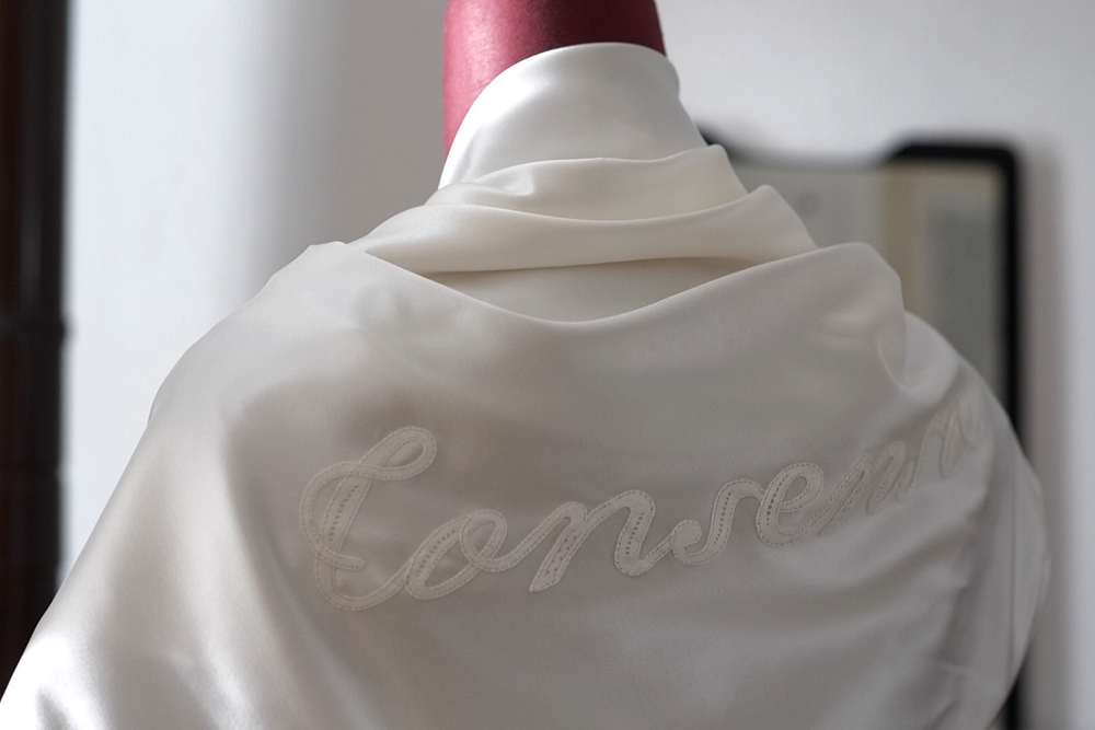 Fili Continui si è sviluppato nell’arco di un anno, coinvolgendo un gruppo eterogeneo di circa 40 donne tra Gorizia e Nova Gorica. Nella prima fase laboratoriale e discorsiva, realizzata con alcune donne vittime di violenza assistite dal centro S.O.S. Rosa di Gorizia e operatrici dello stesso centro, Iacolutti ha guidato il gruppo verso l’individuazione di dieci parole fondamentali che descrivono ciò che le donne coinvolte ricercano in una relazione sana, non specificatamente romantica come spazio, giustizia, armonia, voce.