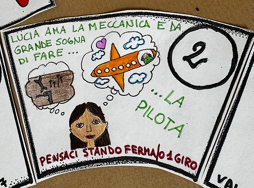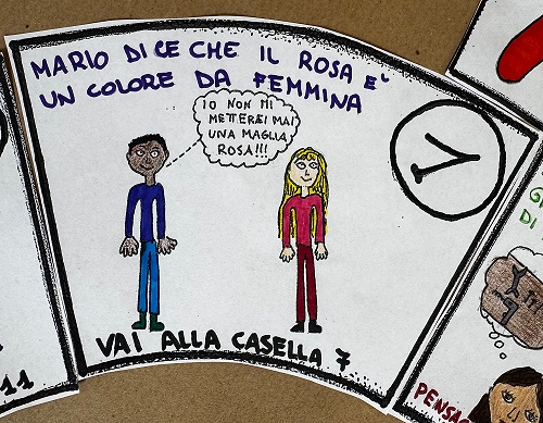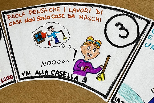 Spiega l’insegnante Valeria Golin presentando lo speciale gioco dell’oca: «Il percorso si è articolato in letture, esercitazioni e riflessioni individuali e collettive sulla parità di genere, con un approfondimento sugli stereotipi che incontriamo ogni giorno. Tutto si è concretizzato nella costruzione di un gioco dell’oca che sfrutta la dimensione ludica propria di questa età. Le caselle sono vignette che raccontano stereotipi comuni e invitano a riflettere su quanto possano essere discriminanti, sostenuti anche dalla rilettura di alcuni articoli della Costituzione e della Dichiarazione Universale dei Diritti Umani». Un modo semplice e potente per dimostrare quanto anche bambini e bambine sappiano affrontare con intelligenza temi fondamentali.