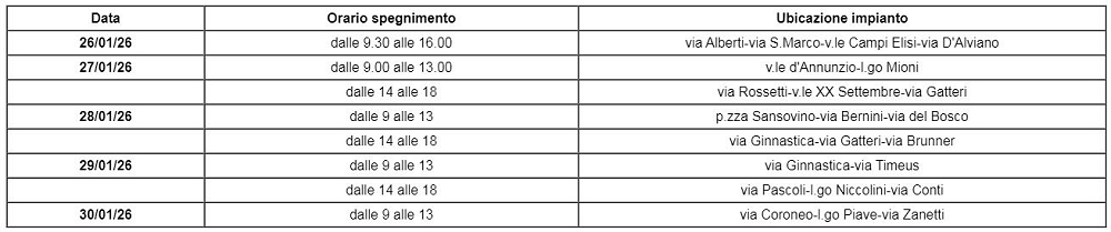 A seguire gli impianti semaforici interessati dai lavori da lunedì 26 a venerdì 30 gennaio 2026.