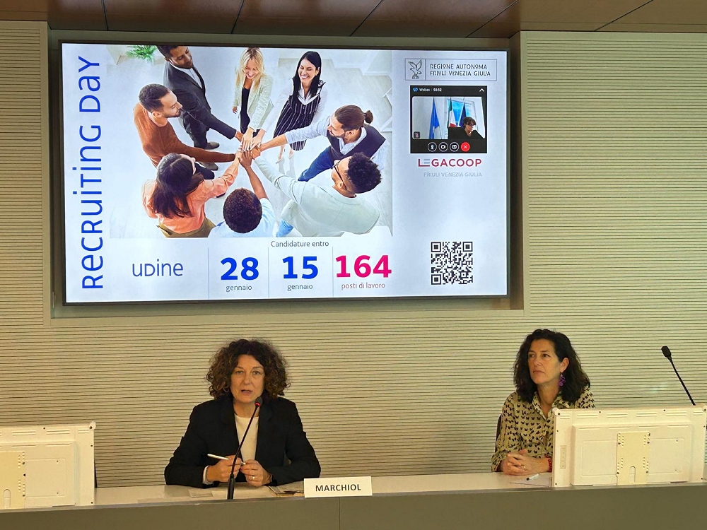 I dettagli della giornata di reclutamento per selezionare candidati e candidate da inserire nelle 10 cooperative attive sul territorio regionale sono stati illustrati oggi, 15 dicembre, nell’ambito di una conferenza stampa tenutasi nel palazzo della Regione a Udine. A raccontare contenuti e realtà interessate l’assessore regionale al Lavoro, Formazione, Istruzione, Ricerca, Università e Famiglia, Alessia Rosolen, la responsabile dei Servizi alle Imprese della Direzione centrale lavoro, formazione, istruzione e famiglia della Regione Fvg Sabrina Marchiol, e la presidente di Legacoop Fvg, Michela Vogrig.