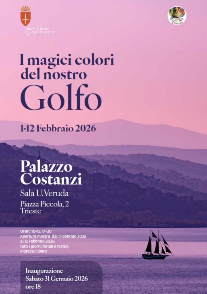 Sabato 31 gennaio alle ore 18.00 presso la Sala Umberto Veruda (Piazza Piccola,2-Trieste) sarà inaugurata la mostra “I magici colori del nostro Golfo” a cura del Gruppo Artisti Triestini Rivel’Art.