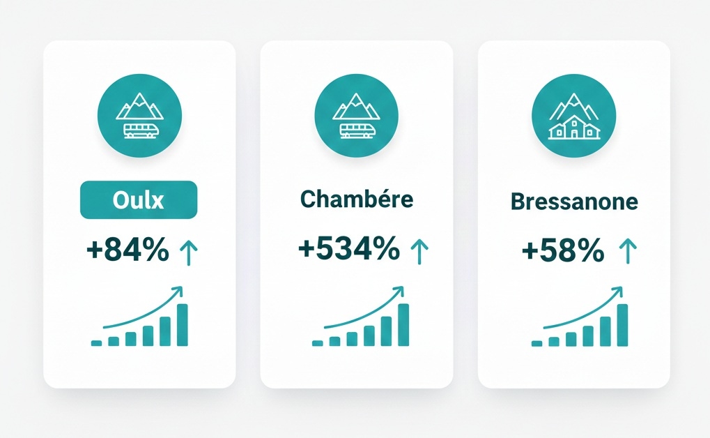 L’analisi 2025 di Trainline rivela una mappa del turismo interno sempre più diversificata: a fianco delle tradizionali città d’arte, emerge un forte interesse per destinazioni che valorizzano la prossimità e la sostenibilità. La classifica delle destinazioni con il maggior tasso di crescita delinea un podio che premia la montagna e la natura: la medaglia d’oro va alla piemontese Oulx (Val di Susa) con una crescita dell’84% di passeggeri, seguita da Bressanone (Alto Adige) con un +58% (argento) e da Lecco, che si aggiudica il bronzo con un +32%. La tendenza alla riscoperta del territorio è confermata anche dal resto della classifica, che vede la crescita di destinazioni nel Sud Italia come Vallo della Lucania (+21%) in Campania e Maratea (+19%) in Basilicata.