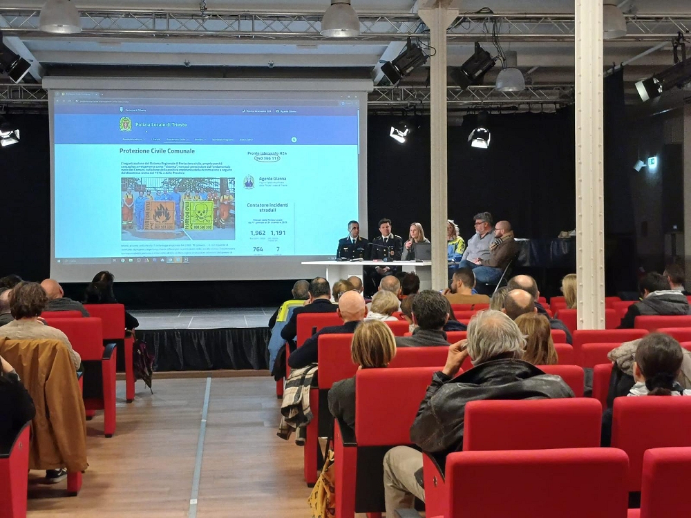 In un’ottica di condivisione delle informazioni e di cultura della prevenzione, ieri (3 febbraio 2026), l’assessore alle Politiche della sicurezza cittadina, Caterina de Gavardo, il Vice Comandante della Polizia Locale di Trieste, Paolo Jerman e i volontari comunali di Protezione Civile, hanno incontrato i 7 Consigli Circoscrizionali comunali in Sala Luttazzi (Porto Vecchio – Porto Vivo).