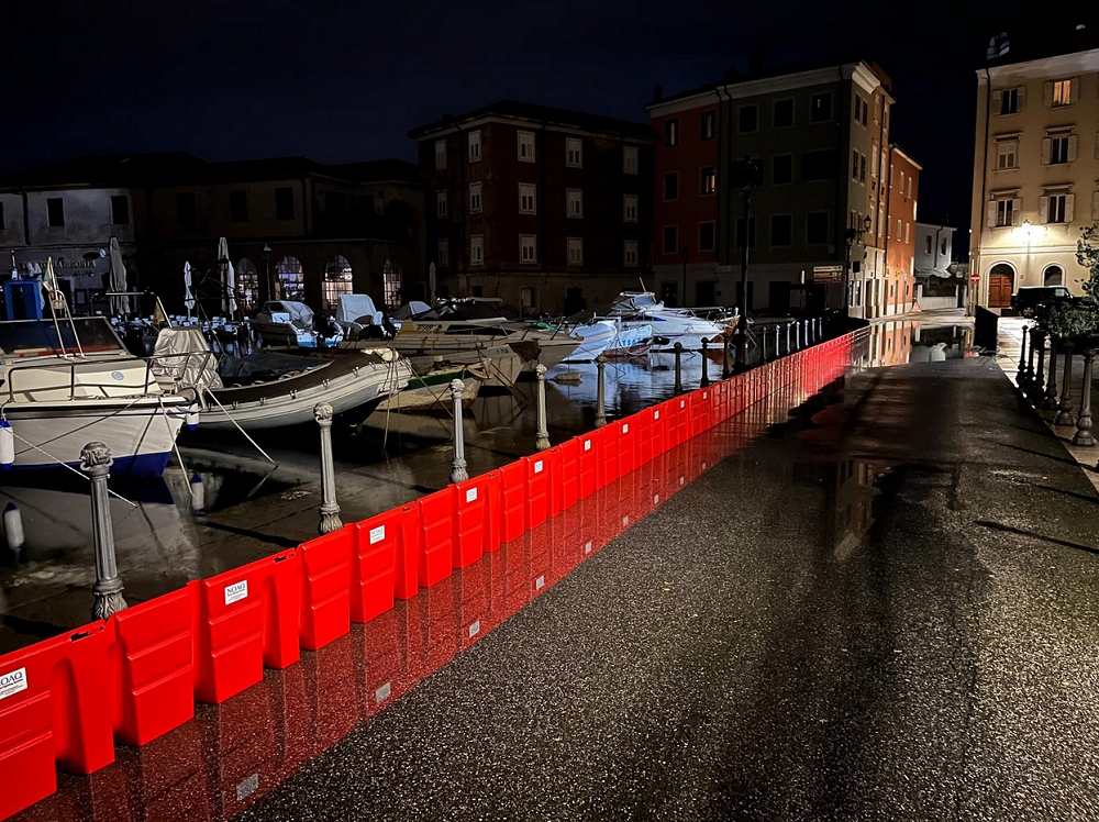 Ieri sera, dopo le 22, si è verificato un picco di acqua alta a Muggia. Il Comune, attraverso i social, già nel pomeriggio aveva allertato i cittadini con un avviso. Comune e Protezione Civile di Muggia hanno quindi fissato le paratie che, come già sperimentato in altre occasioni, hanno funzionato, contenendo l’acqua sul Mandracchio e scongiurando disagi che si erano verificati prima dell’acquisto e dell’utilizzo delle barriere.