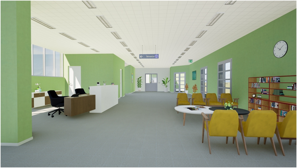 Il primo piano ospiterà inoltre le aree direzionali, gli spazi per la formazione del personale e le attività di ricerca scientifica, elementi fondamentali per una struttura con forte vocazione universitaria.