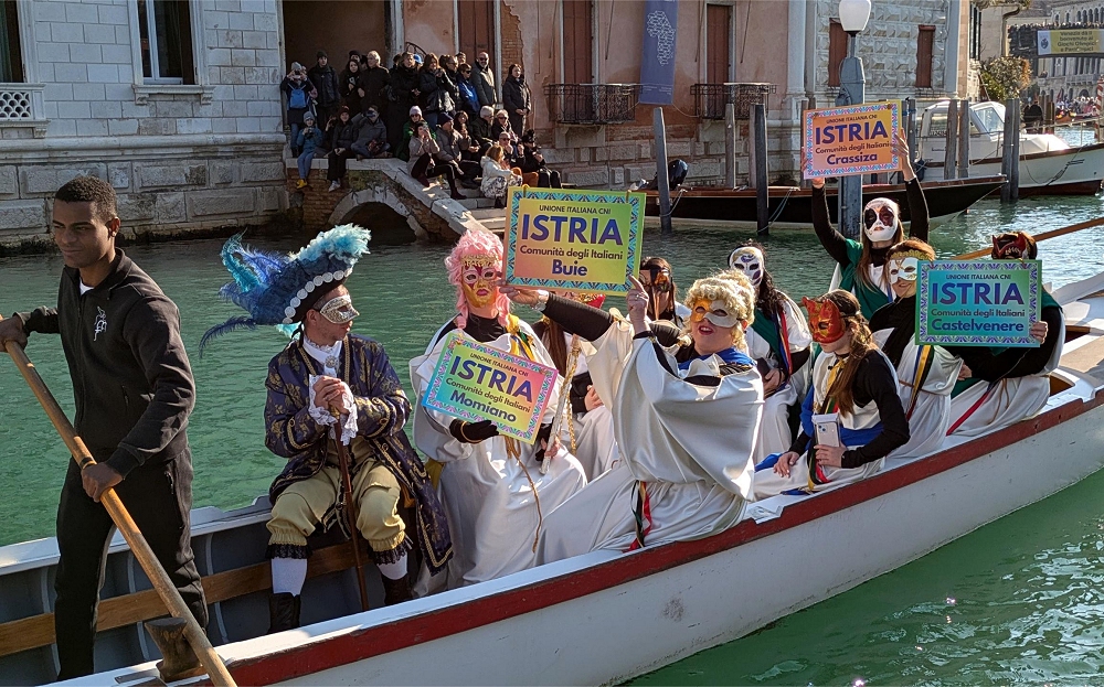 La partecipazione delle Comunità degli Italiani al Carnevale di Venezia non è stato un semplice atto simbolico, ma l’esito di un percorso di laboratori, incontri, memoria e lavoro insieme. Le maschere sono state create in Istria con i laboratori condotti dai maestri veneziani Franco Cecamore e Lucio Lizzul coordinati dall’autore Vittorio Baroni. A Venezia gli istriani hanno sfilato indossando i costumi, realizzati con il supporto del Teatro di Fiume, rappresentativi degli antichi greci con la fascia dei colori olimpici.