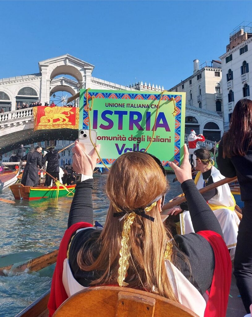 La flotta delle 5 barche a remi del gruppo Istria con la collaborazione dell’ASD Gloria Rogliani, era formata da una batea, una caorlina, una buranella e due gondole. Dopo l’approdo a Rialto, festa in Campo dell’Erbaria. Qui Marin Corva ha incontrato il Consigliere Delegato alla Tutela delle Tradizioni del Comune di Venezia Giovanni Giusto, il Direttore Artistico del Carnevale di Venezia e scenografo del Teatro La Fenice Massimo Checchetto e il Direttore Generale di Vela spa Fabrizio D’Oria. Il gruppo istriano è salito sul palco accolto da applausi e curiosità ricevendo un riconoscimento con menzione speciale che lo ha fatto diventare parte integrante della celebrazione cittadina.