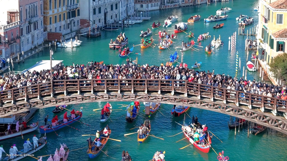 Venezia ha accolto il gruppo istriano, con al seguito una troupe di Tele Capodistria, fin dai preparativi all’Hotel Lugano Torretta di Marghera e la passeggiata in maschera tra campi e calli iniziata a Piazzale Roma, passando per i Tolentini e San Rocco fino all’imbarco a San Tomà. Il corteo acqueo organizzato dal Coordinamento Remiere sul Canal Grande ha avuto il suo epilogo a Rialto con lo scoppio della pantegana di cartapesta. Grande Festa in Campo dell’Erbaria e infine sul palco di Piazza San Marco.