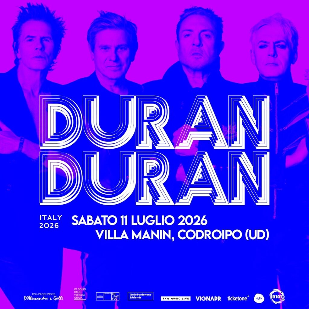 L’estate italiana si prepara ad accogliere una delle band più iconiche e influenti della storia della musica: i Duran Duran annunciano tre concerti-evento nel nostro Paese, in tre tra i luoghi più suggestivi e prestigiosi d’Italia, per vivere delle serate assolutamente uniche, in cui l’energia e il carisma di una band leggendaria incontreranno scenari di incomparabile bellezza. Il 7 luglio all’Arena di Verona, il 9 luglio alla Reggia di Caserta e sabato 11 luglio a Villa Manin a Codroipo (UD). Quest’ultima – promossa dalla Regione Friuli Venezia Giulia e inserita nel programma di “GoToPordenone&Friends” – sarà l’unica data anche per i fan austriaci, sloveni e croati, ovvero un’occasione davvero speciale per tutta l’area alpino-adriatica.