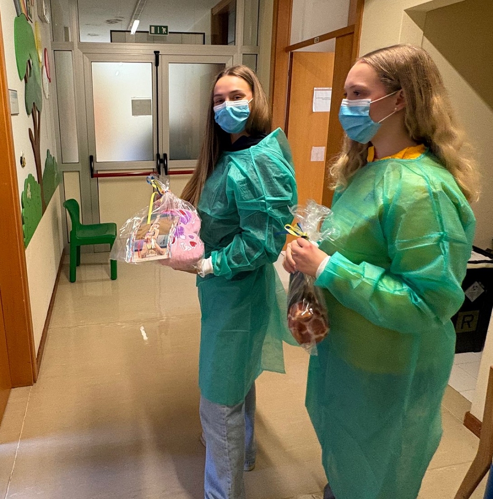 L’atleta friulana non è arrivata a mani vuote: ha portato con sé decine di peluche, raccolti nel corso delle sue numerose competizioni nazionali e internazionali. È tradizione, infatti, che il pubblico della ritmica lanci doni in pedana al termine delle esibizioni; Tara ha scelto di dare una nuova casa a questi soffici compagni di viaggio, regalandoli ai piccoli pazienti per offrire loro un momento di leggerezza.