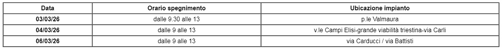 A seguire gli impianti semaforici interessati dai lavori da martedì 3 a venerdì 6 marzo 2026.