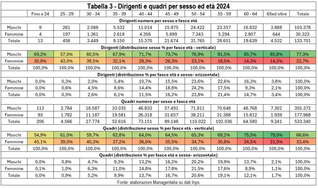 Tornando ai dati, la prospettiva è sempre più rosea: la componente femminile pesa per il 40% tra gli under 35 e per il 32% tra gli under 40, a fronte del 22,7% sul totale. Anche tra i quadri la presenza femminile è pari al 33,4%, segnale di un ricambio generazionale che vede progressivamente crescere la rappresentanza delle donne nei ruoli apicali.