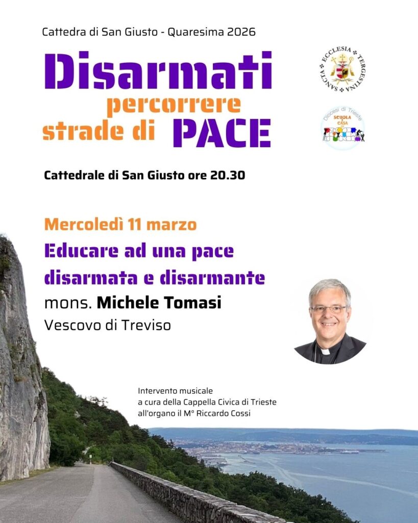 Mercoledì 11 marzo, mons. Michele Tomasi, Vescovo di Treviso e membro del Comitato scientifico delle Settimane Sociali dei Cattolici in Italia, proporrà una meditazione sulla recente Nota pastorale della Conferenza Episcopale Italiana “Educare a una pace disarmata e disarmante” (5 dicembre 2025), nota che riprende le parole di Leone XIV all’inizio del suo pontificato. La pace offerta da Gesù crocifisso e risorto “non è frutto di ragionevoli compromessi o rapporti di forza, ma ha origine nel riconoscimento che ogni persona è figlia di Dio, in una fratellanza/sororità estesa anche al nemico (cf. Mt 5,44; Lc 6,27.35)”, non nasce dall’equilibrio delle paure, ma dalla conversione e dal disarmo delle coscienze, delle parole e dei gesti.