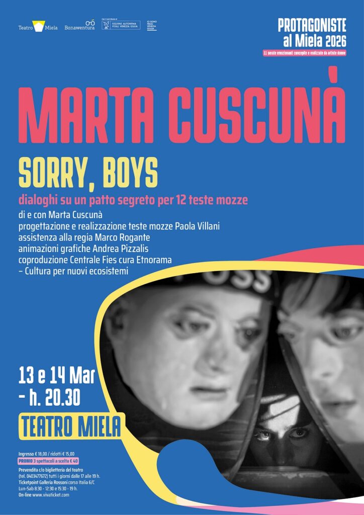 Partendo da un fatto di cronaca – la gravidanza condivisa di diciotto ragazze adolescenti – Marta Cuscunà, accompagnata da dodici teste animatroniche, compie un’analisi della società contemporanea, tra violenza di genere, tabù e modelli di mascolinità.
