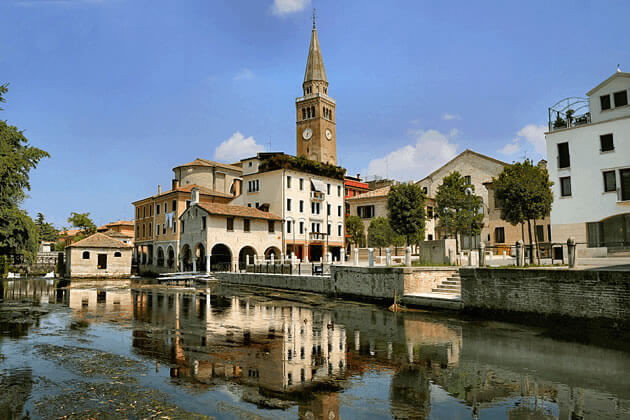 Poco distante si raggiunge l’elegante cittadina di Portogruaro, dove il tempo sembra scorrere più lento con la dolcezza delle acque del Lemene. Passeggiando nel centro storico ci si immerge in un’atmosfera raffinata, tra palazzi gotici, portici medievali e antichi mulini che si specchiano nel fiume. Ogni angolo racconta secoli di storia, tra arte, cultura e tradizioni. Una destinazione dal fascino discreto di autentica bellezza veneta.