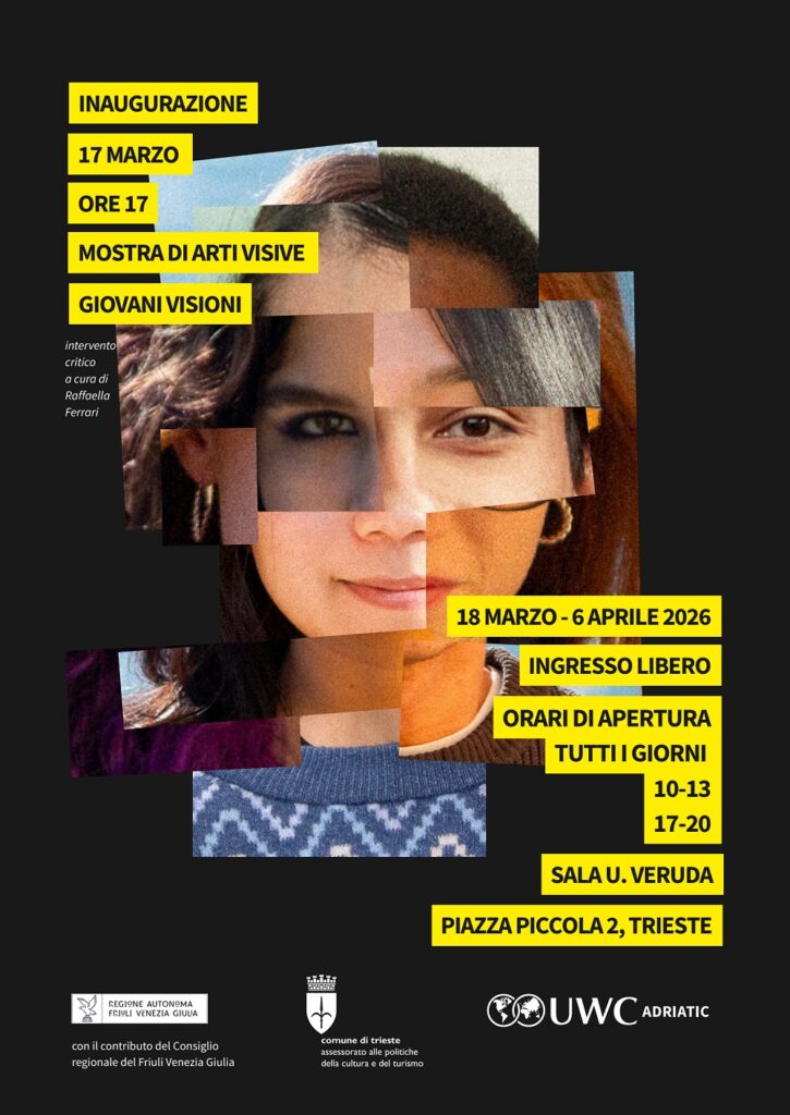Il Collegio del Mondo Unito dell’Adriatico ONLUS, in collaborazione con il Comune di Trieste, presenta la mostra “Giovani Visioni. Mostra di Arti Visive degli studenti del Collegio del Mondo Unito dell’Adriatico” che raccoglie i progetti finali di Arti Visive di 15 studenti che stanno completando il loro percorso formativo a Duino.