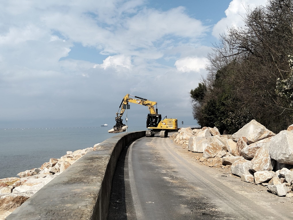 Attualmente sono stati eseguiti gli interventi di sistemazione parziale del muro di sostegno della carreggiata e del muretto a bordo strada, che saranno completati alla fine dei lavori di posa della scogliera: a riguardo, anche in questo caso il sindaco Polidori ha chiesto espressamente all’impresa di posizionare la parte piatta dei massi in modo da permettere ai bagnanti di sistemarsi in maniera più comoda.