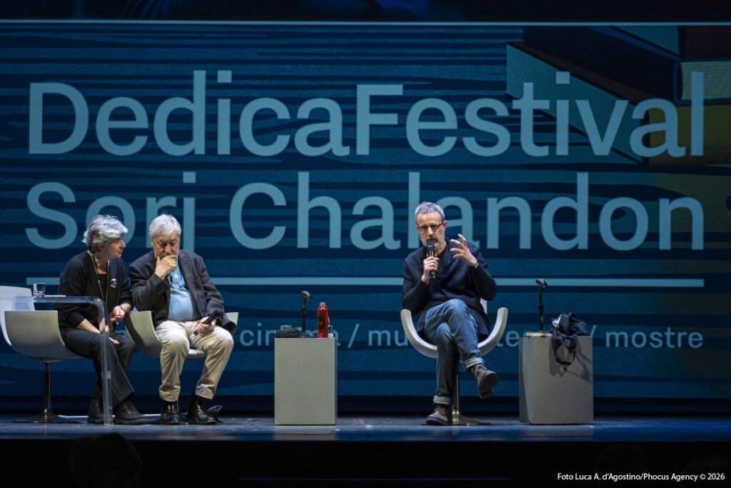 Teatro Verdi di Pordenone esaurito e un’accoglienza calorosa e partecipata ha segnato l’inaugurazione del festival Dedica, che quest’anno ha accolto lo scrittore e reporter francese Sorj Chalandon. Un pubblico attento ha salutato l’ingresso dell’autore con una vera ovazione, mentre un applauso finale, altrettanto lungo e commosso, ha chiuso la serata, in un clima di evidente emozione condivisa tra platea e protagonista.