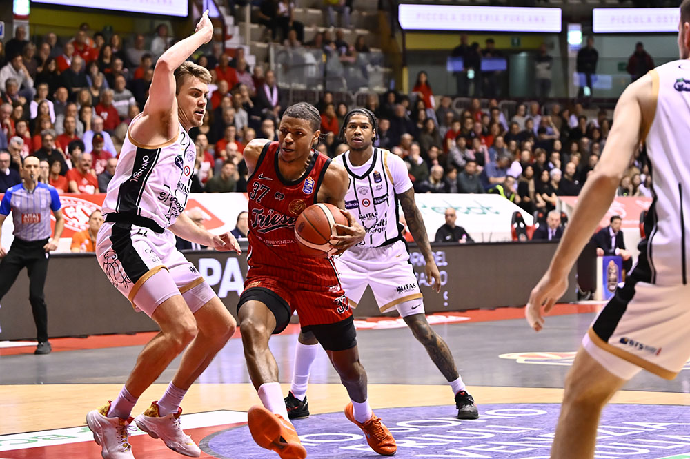 Il PalaTrieste torna ad accendersi e i biancorossi rispondono con una vittoria importante. La Pallacanestro Trieste supera l’Aquila Basket Trento 84-78 al termine di una partita intensa e combattuta per quaranta minuti. A trascinare la squadra di coach Taccetti sono Ramsey, autore di 25 punti, e Toscano-Anderson con 21, ben supportati dai 15 di Candussi. Per Trento non bastano i 21 punti di Steward e i 16 di Aldridge. Spinta dal proprio pubblico, Trieste riesce a gestire i momenti chiave della gara e porta a casa due punti preziosi.