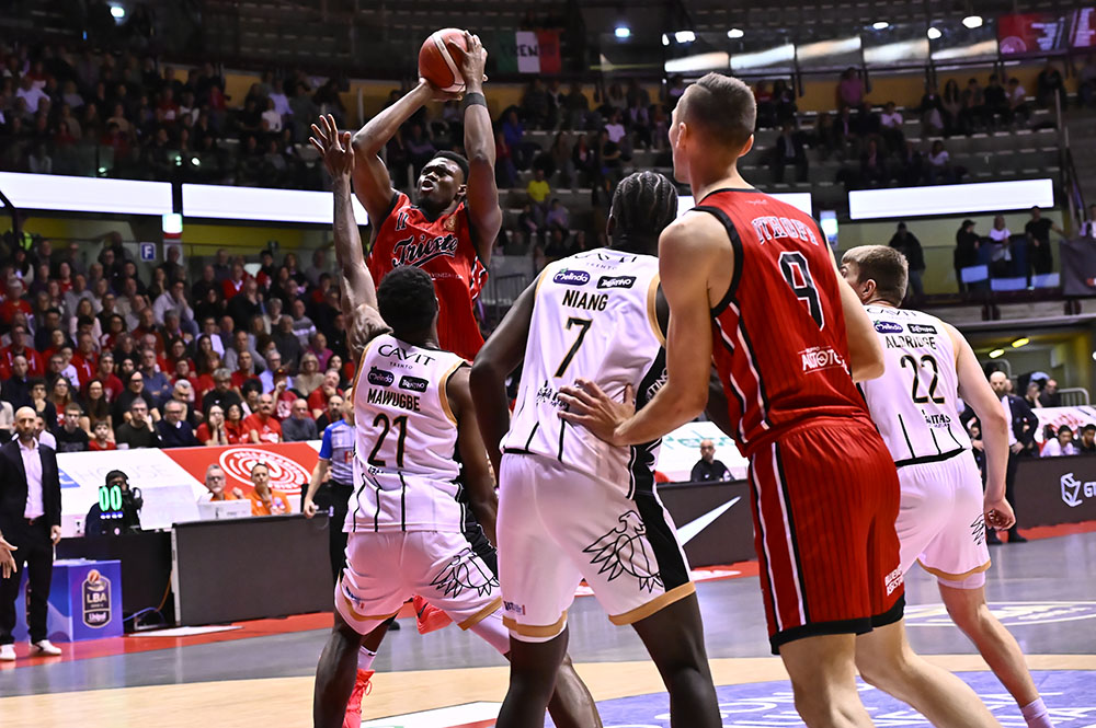 Aquila Basket Trento: Steward 21, Jones 7, Niang 2, Jogela 12, Forray n.e., Airhienbuwa n.e., Mawugbe 4, Aldridge 16, Jakimovski 7, Bayehe 4, Hassan 0, Battle 5.