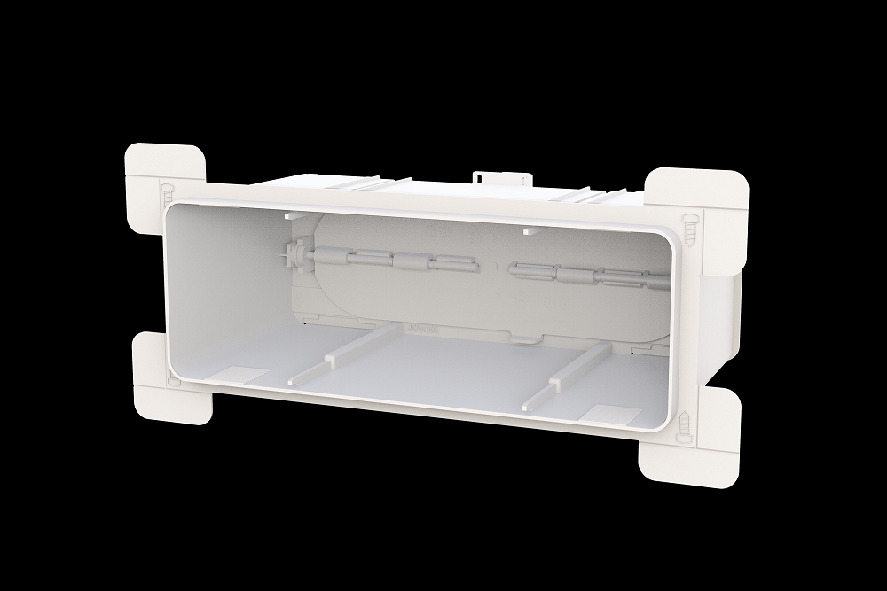 Plenum in PS con collarino posteriore telescopico “Zefiro Box” – Attacco regolabile per tubazioni di diversi diametri e serranda di bilanciamento dei flussi d’aria. La progettazione flessibile e semplice da montare lo rende efficiente e compatibile con sistemi di regolazione e controllo moderni.