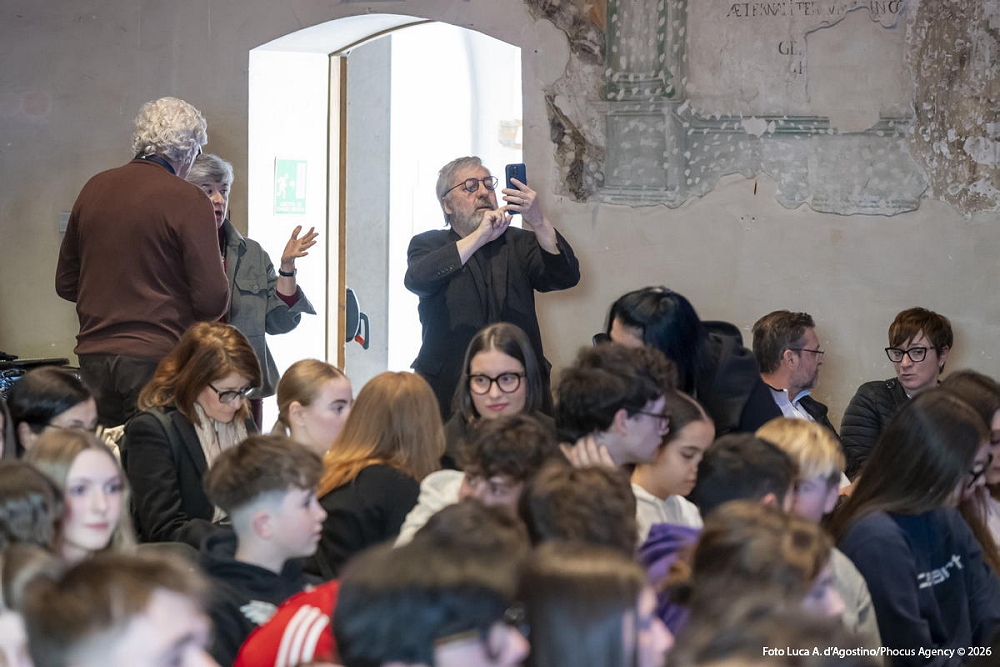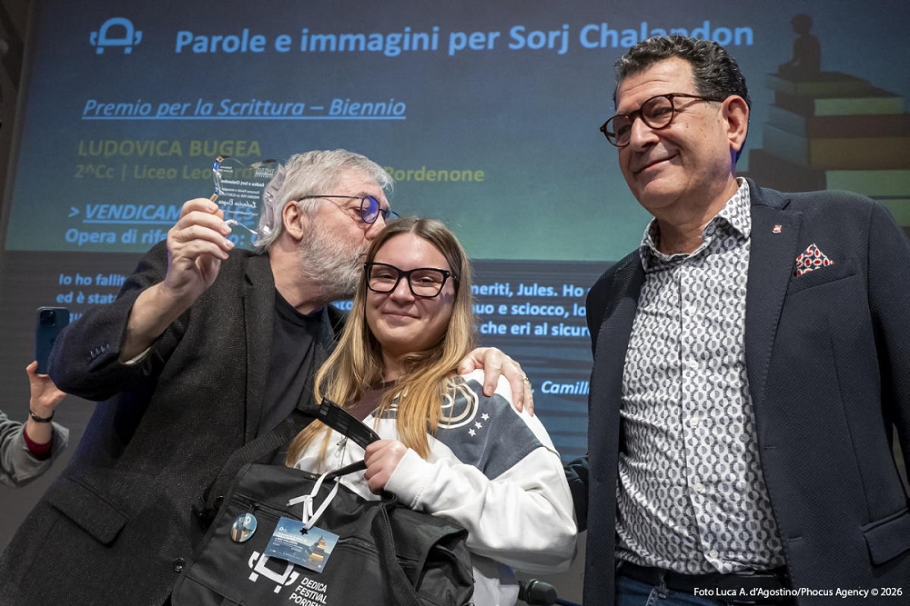 Un appuntamento tra i più intensi del festival, che si è rinnovato con la partecipazione di un folto gruppo di studenti delle scuole superiori della provincia, in rappresentanza dei 500 ragazzi di sette istituti e 20 classi coinvolte nel percorso “Leggere con Dedica”. Ragazzi che nei mesi scorsi hanno approfondito la poetica dell’autore realizzando 89 opere tra recensioni, elaborati visivi e multimediali.
