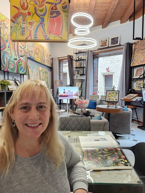 Al cuore della galleria vi è l’arte di Caro Lucchetta (nome artistico Umana), architetta italo-argentina che da anni si divide tra Buenos Aires e Asolo, e che ha fatto dell’arte olistica il suo tratto distintivo e inconfondibile. Un’arte che cerca l’essenza delle cose, libera da schemi e preconcetti, capace di mettere in dialogo cuore e anima in un flusso continuo di energia e sensazioni che prendono forma sulla tela. Un’arte che rivela e lascia emergere ciò che spesso resta nascosto, che non si limita a decorare ma scava in profondità, portando in superficie emozioni autentiche e universali. Un’arte che diventa, prima di tutto, esperienza condivisa: per chi crea, immerso nel proprio flusso espressivo, ma anche per chi osserva e si lascia coinvolgere, riconoscendosi in quell’energia.