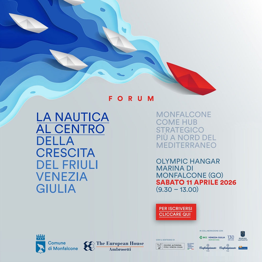 L’iniziativa, organizzata dal Comune di Monfalcone in collaborazione con The European House-Ambrosetti (TEHA Group), rappresenta un’importante occasione di confronto sul ruolo della nautica da diporto e delle attività collegate come leva strategica per lo sviluppo economico e occupazionale del territorio.Al centro dei lavori i temi chiave per il futuro del comparto: intelligenza artificiale, innovazione,formazione, discipline sportive ed evoluzione dell’ecosistema delle marine, con attenzione all’eccellenza quale driver competitivo. Nel corso del Forum sarà inoltre presentato lo studio TEHA “La nautica italiana nel contesto della valorizzazione della Risorsa Mare”, che analizza lo stato dell’arte del settore nautico in Italia con particolare attenzione al Friuli Venezia Giulia, dove il Comune di Monfalcone – punto più a Nord del Mediterraneo – si configura come hub strategico ed esempio virtuoso di buone pratiche a sostegno della filiera.L’evento è realizzato con il sostegno della Regione Autonoma Friuli Venezia Giulia e in collaborazione con BCC Venezia Giulia, Marina Lepanto, Ocean Marine, Confartigianato Gorizia e Trieste.