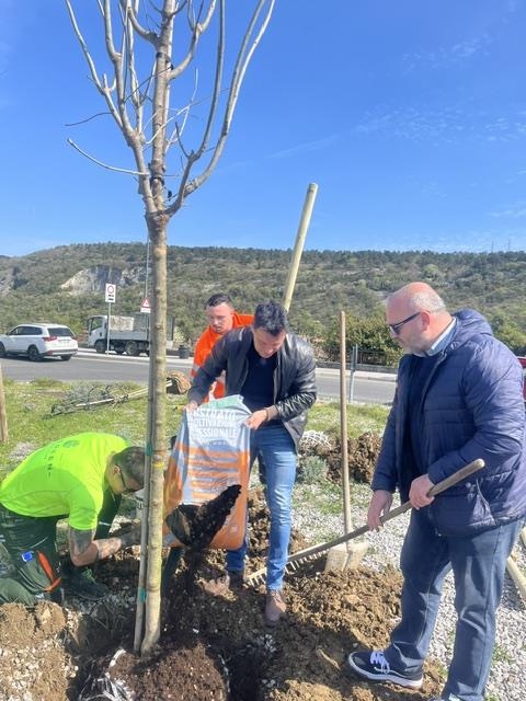 Questa mattina alla presenza dell’assessore alle Politiche del Territorio, Michele Babuder e del responsabile di P.O. Interventi sul Verde e Alberature Servizio Ambiente, Verde e Igiene Urbana, Francesco Panepinto sono stati messi a dimora alla rotatoria di Cattinara, due frassini orniello (Fraxinus ornus), specie tipica del Carso, estremamente rustica e resistente alla siccità.