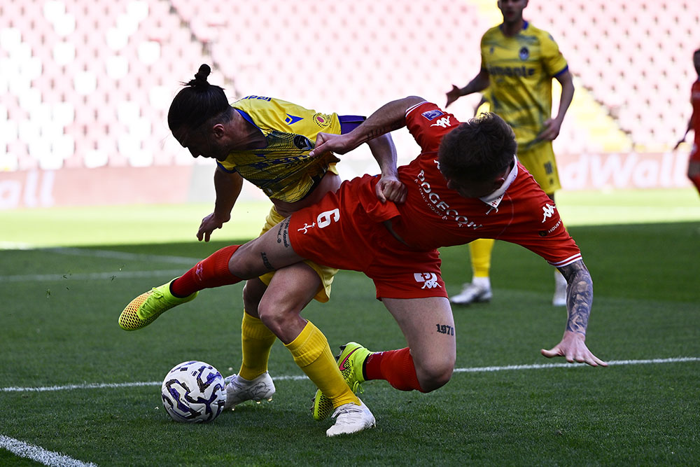 Spingono i lombardi, ma la vittoria è in cassaforte. Dopo 5 minuti di recupero, trionfo per i rossoalabardati, con il pubblico che tributa il meritato e giusto applauso a dei giocatori seri, bravi, esemplari dal punto di vista dell’impegno e della volontà, in una situazione che avrebbe stroncato chiunque: signori giù il cappello!