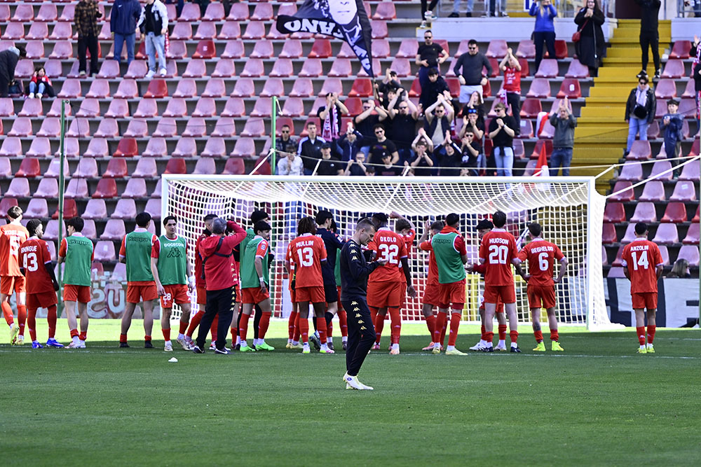 Noi dobbiamo andare via da qui con la gente consapevole che abbiamo fatto il massimo per questa città. Nonostante quello che ci circondava abbiamo dato orgoglio e dignità alla maglia, quello che è successo non è colpa nostra, ci siamo trovati in una situazione di difficoltà di gestione. Credo ed anzi sono certo, che lasceremo un bel ricordo a tutta la gente che vive un po’ di calcio, poi preferisco aspettare sempre la fine per un bilancio definitivo. Ma l’obiettivo è questo, ok per la gloria, ok per la maglia, ma l’obiettivo è entrare nei cuori della gente per quello che abbiamo fatto. Mi rendo conto che sia stato un anno difficile, sportivamente triste, ma non si può dire nulla per quello che è stato fatto in campo. Considerando tutti i tre gironi, per le difficoltà che ha avuto questa rosa, per i giocatori che ha perso nel corso della stagione, se si guardano i punti fatti penso che questa squadra abbia fatto parlare il campo con lavoro e sacrificio, questo voglio che resti. Una squadra che ha dignità, orgoglio, mentalità e che non molla niente, le basi su cui costruire il futuro”.