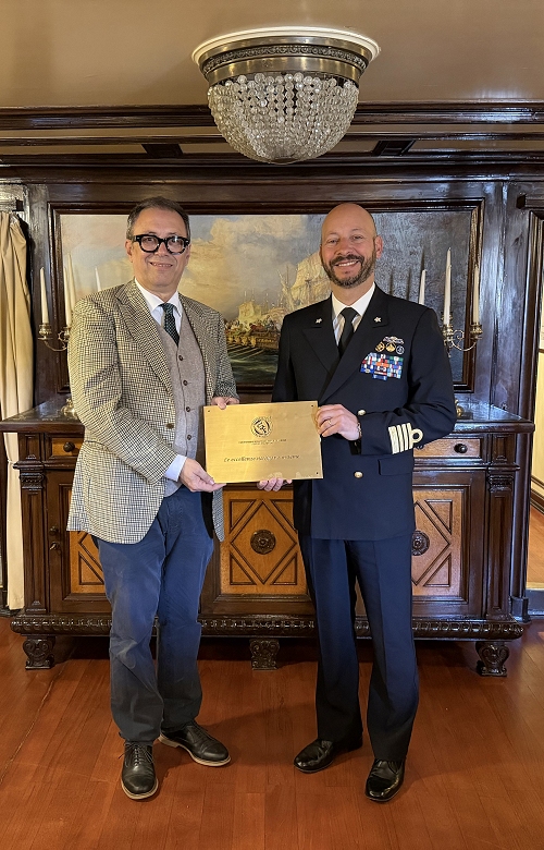 Il volume, denominato “libro di Quadrato”, sarà utilizzato a bordo della Amerigo Vespucci per raccogliere impressioni, riflessioni, dediche e annotazioni relative agli incontri istituzionali, alle riunioni degli ufficiali e ai momenti più significativi della vita della nave. Si tratta quindi non soltanto di un dono simbolico, ma anche di uno strumento destinato a diventare, nel tempo, una preziosa memoria storica delle attività e delle esperienze vissute a bordo.