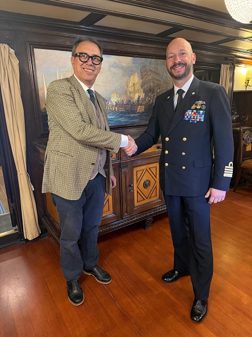 Il Presidente della Fondazione, Roberto Giurano, accompagnato da una delegazione dello Scriptorium Foroiuliense, è stato ricevuto dal Comandante della nave Capitano di Vascello Nicasio Falica in un clima di grande cordialità, stima reciproca e profonda condivisione di valori. L’incontro ha rappresentato un momento di particolare significato istituzionale e culturale, confermando il legame ormai consolidato tra la Fondazione Scriptorium Foroiuliense e la Nave Scuola Amerigo Vespucci, due realtà che, pur operando in ambiti differenti, sono unite dall’impegno nella valorizzazione della tradizione, dell’eccellenza, della storia e dell’identità italiana.