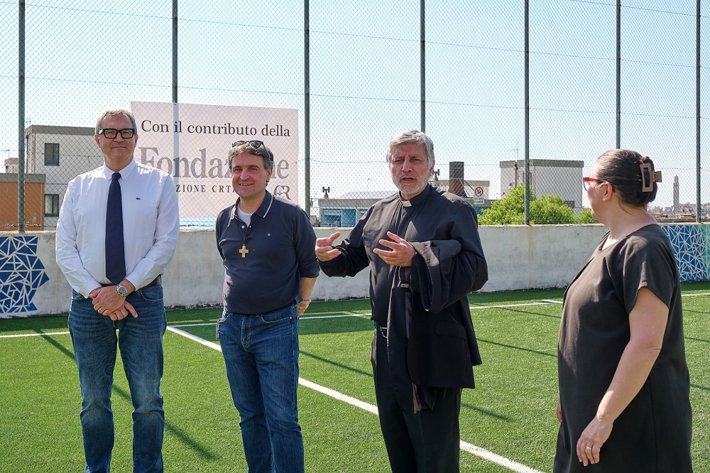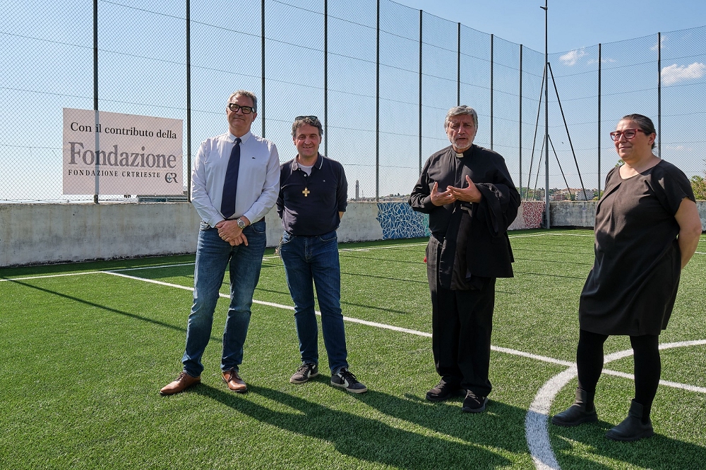 È stato inaugurato oggi il nuovo campo da calcetto dell’Oratorio dei Salesiani di San Giovanni Bosco. Alla cerimonia erano presenti il parroco, don Salvatore di Martino; don Marco Brollo responsabile dell’Oratorio; Enrico Eva, componente del Consiglio di Amministrazione della Fondazione CRTrieste, che ha sostenuto integralmente i costi dei lavori i lavori, e Francesca Parisi, rappresentante della Comunità di San Martino al Campo.