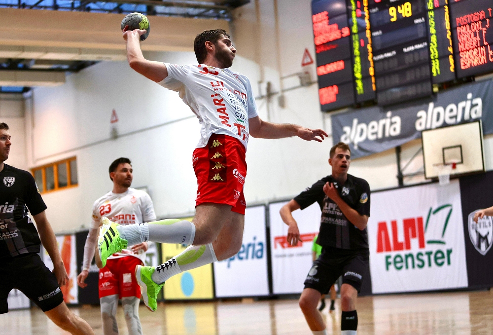 Restano tre i gol di vantaggio al 34’ (18-21, reti di Pauloni e Vanoli), Conte con due sette metri consecutivi tiene viva Merano mentre capitan Pernic finisce per ben due volte fuori per due minuti in rapida successione. Trieste perde un po’ di ritmo e i Black Devils tornano nuovamente in perfetta linea di galleggiamento, mettendo il break di 4-0 con il solito Conte a regalare il sorpasso altoatesino (24-23 al 42’, timeout Lisica). L’Alperia mette anche due reti di margine tra sé e gli ospiti, poi Esparon si mette in proprio per un nuovo cambio di vantaggio del match (27-29), rimane comunque tutto aperto a 10’ dalla fine sul 30-30 imbucato su lato Black Devils da Fedila. Esparon dai sette metri riporta in vantaggio il Trieste, Merano per due minuti resta senza Starcevic ma trova il modo di rimettere la testa avanti con Nunez prima del gol in ala di Parisato (32-32). Sono poi i biancorossi a trovarsi con l’uomo in meno (fuori Bono), Postogna disinnesca un rigore di Conte ed Esparon fa +1 a 2’30’’ dalla fine. La volante di Ernst pareggia per l’ennesima volta i conti, Esparon colpisce la traversa nell’azione successiva e nell’ultimo minuto è 33-33: Ernst trova il gol in penetrazione centrale a 20’’ da giocare, l’ultimo tiro di Esparon finisce alto per il definitivo 34-33 Merano.