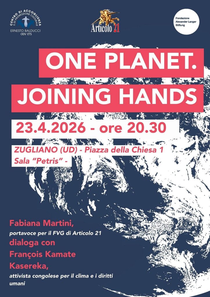 Giovedì 23 aprile, alle ore 20.30, François Kamate Kasereka incontrerà il pubblico in un incontro in programma nella Sala Petris del Centro Balducci di Zugliano dal titolo “One planet. Joining hands”. A guidare l’appuntamento la domanda: cosa significa alzare la propria voce, in modo nonviolento, a favore dei diritti ambientali e umani e in maniera coerente con quanto proposto da Alexander Langer? L’incontro è promosso in collaborazione tra Centro di accoglienza e di promozione culturale Ernesto Balducci, Articolo 21 Fvg e Fondazione Langer.