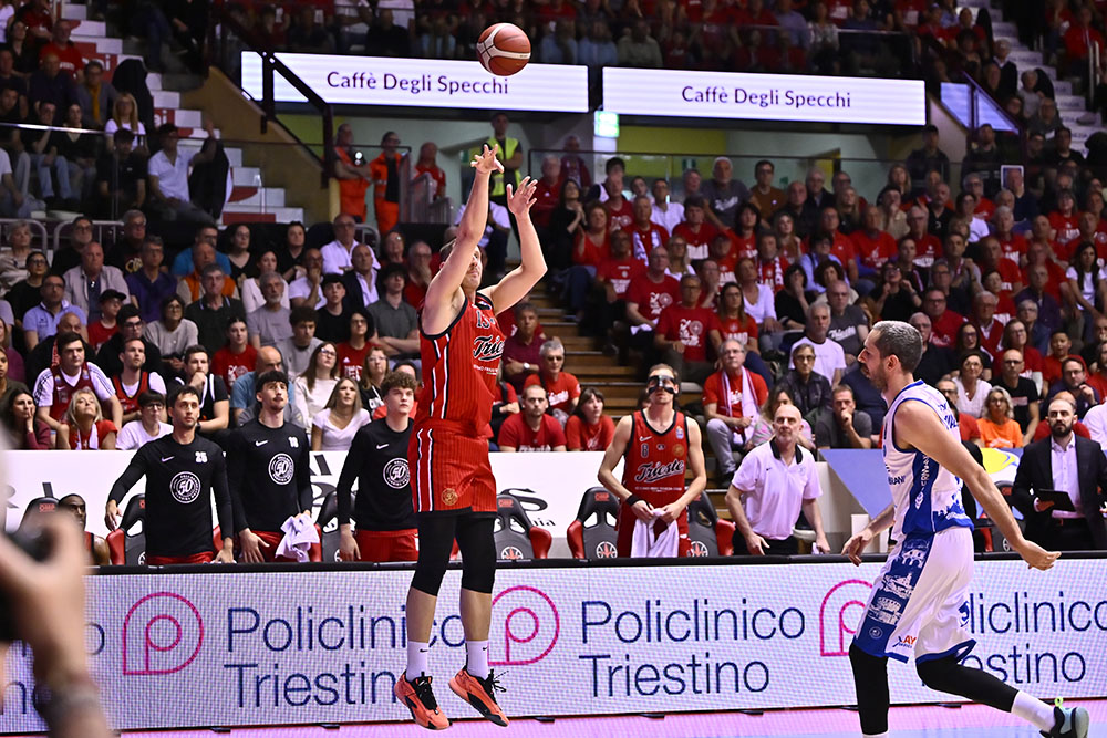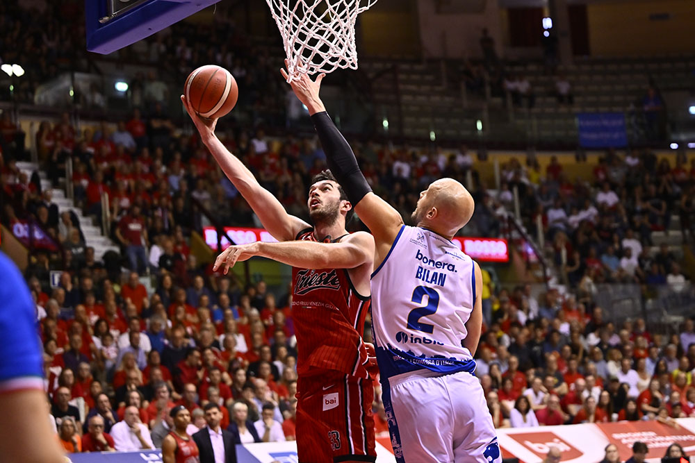Il calore del PalaTrieste è forte, ma non basta: davanti a 5.612 spettatori, la Pallacanestro Trieste non riesce a superare la Germani Brescia che si impone 82-86. I biancorossi restano pienamente in partita per quaranta minuti, trovando buone soluzioni e riuscendo più volte a costruire vantaggi, senza però concretizzare nel finale contro una Brescia solida e precisa nei momenti decisivi. Per Trieste arrivano 15 punti a testa per Toscano-Anderson, Ramsey e Bannan, con quest’ultimo che aggiunge anche 7 rimbalzi. Dall’altra parte Burnell guida gli ospiti con 22 punti e 7 rimbalzi, seguito dai 18 di Della Valle e dai 14 punti con 10 rimbalzi di Bilan.