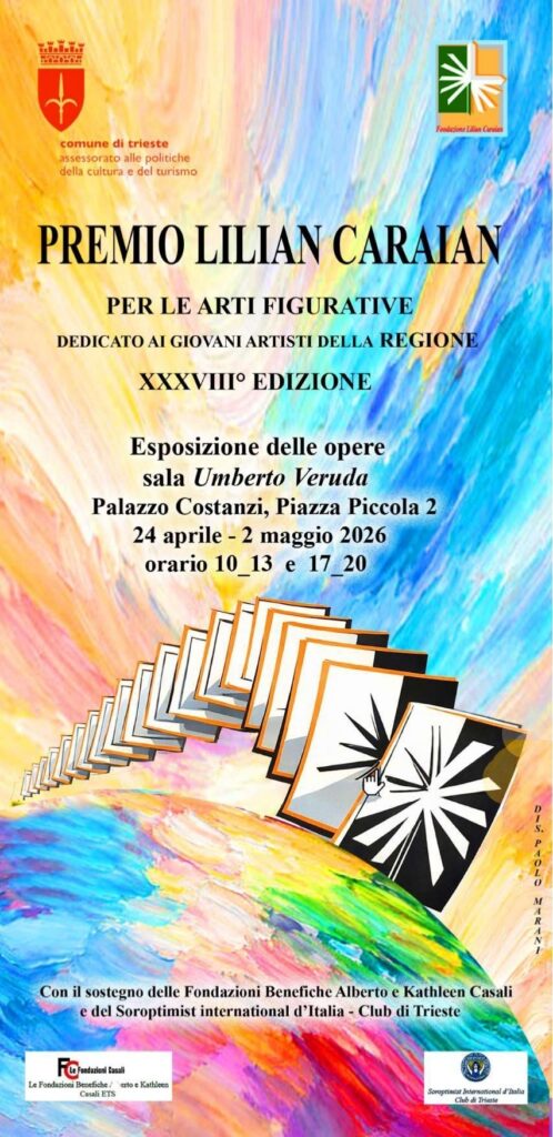 È in programma giovedì 23 aprile 2026 alle ore 19.00, presso la Sala “Umberto Veruda”di Palazzo Costanzi (piazza Piccola, 2), l’inaugurazione della mostra degli artisti che hanno preso parte al 38° Concorso per le Arti Figurative, indetto dalla Fondazione “Lilian Caraian”. Nel corso del vernissage verranno premiati i vincitori dell’edizione 2026.