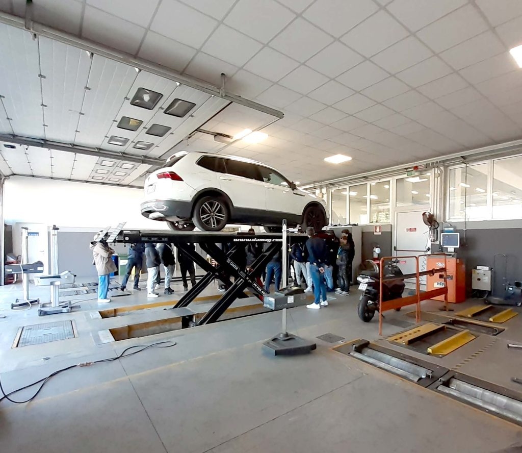 Durante la visita, i ragazzi hanno potuto osservare da vicino l’operatività di un’officina moderna e attiva, comprendendo l’importanza delle nuove tecnologie applicate alla sicurezza stradale e alla manutenzione dei veicoli.