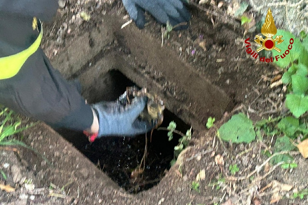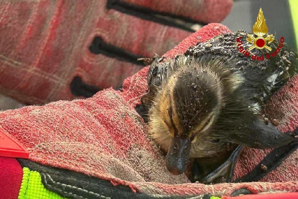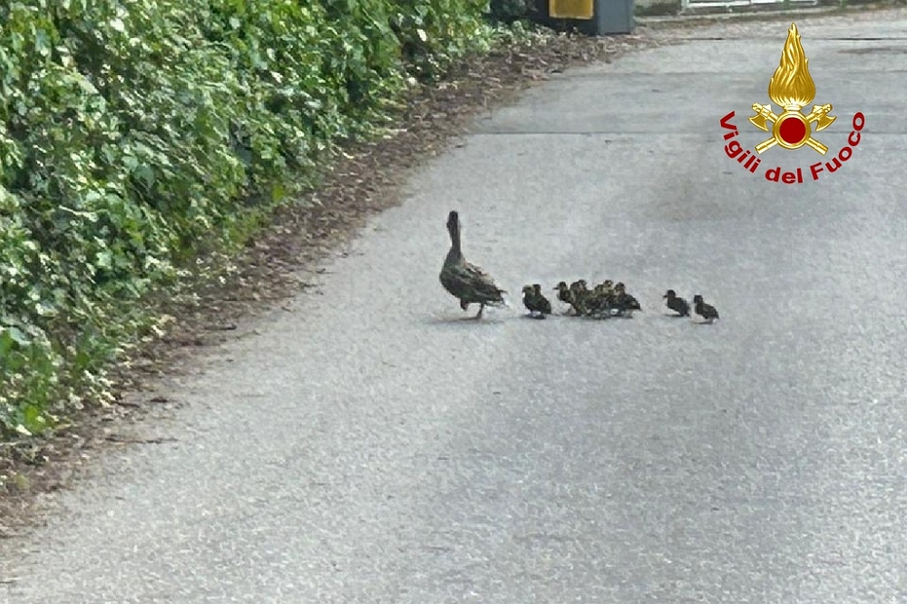 Erano cadute e bloccate all’interno di una caditoia interrata, i Vigili del fuoco le hanno recuperate sotto gli occhi attenti di mamma papera.