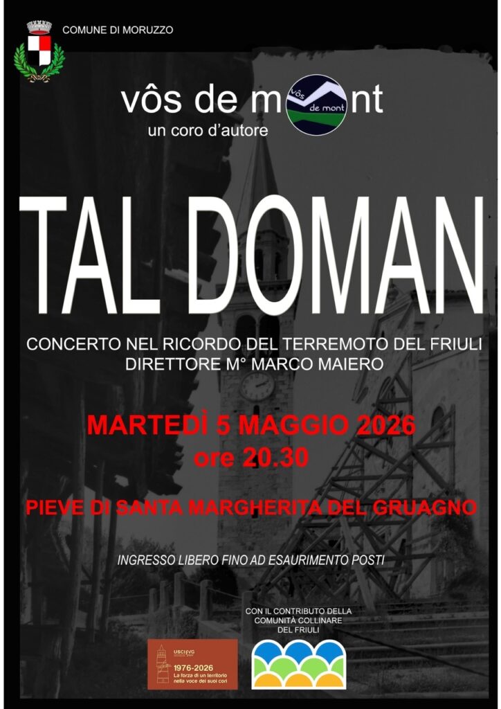 La serata è organizzata dal Comune di Moruzzo con il contributo della Comunità collinare del Friuli, nell’ambito delle manifestazioni in ricordo del 50° anniversario del terremoto del Friuli e inserita nel cartellone del progetto USCI Fvg “1976 – 2026 La forza di un territorio nella voce dei suoi cori”.