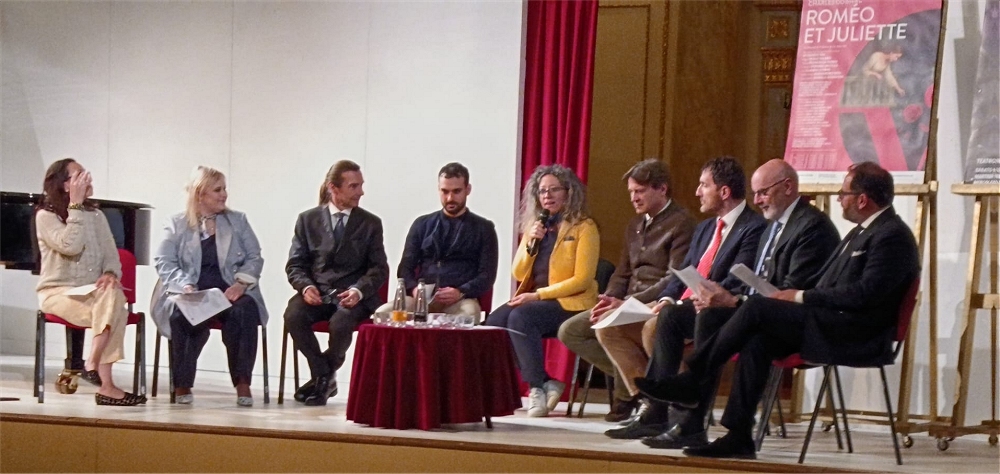 Nella gremita “Sala del Ridotto”del Teatro Lirico si è assistito agli onori di casa della addetto stampa del Teatro Lirico “Giuseppe Verdi” Dott.ssa Nuccella presentando Serena Tonel, Vice Sindaco di Trieste ed Assessore ai Teatri portando a tutti i presenti anche il saluto del Sindaco, ha avuto parole di vivo entusiasmo per questi due enti di eccellenza della nostra città con questo ambizioso doppio lavoro moltiplicando l’offerta teatrale di Trieste. Il tema scelto, quello di Romeo e Giulietta è quello che nei secoli si è profuso in tanti linguaggi – dall’otto maggio per la lirica e il nove Maggio per la Prosa.- il suo pensiero è andato al risultato che, nelle due diverse interpretazioni porterà sicuramente a suggestioni diverse perché è terreno di numerose esplorazioni con ringraziamenti anche per chi lo ha realizzato. La giornalista Sara De Sal per l’ “AssociazioneTriestina Amici della Lirica G. Viozzi” ha interloquito con gli ospiti presenti alla conferenza stampa su questo evento che è un unicum in Italia e forse in Europa: prosa e lirica accomunate in due spettacoli con lo stesso regista, lo stesso autore di fondo: Shakespeare e il suo dramma “Romeo e Giulietta” e lo stesso luogo di rappresentazione il “Teatro Lirico Giuseppe Verdi”.