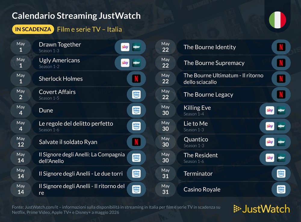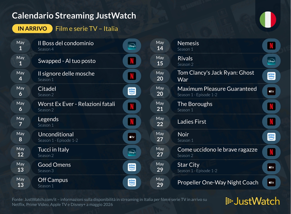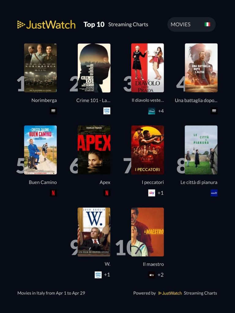 Come avviene a conclusione di ogni mese, JustWatch, la più grande guida al mondo di contenuti in streaming, pubblica la classifica mensile dei film e delle serie tv più gettonate in Italia a aprile 2026 nella quale sono indicati anche i cambiamenti di posizione rispetto al mese precedente.